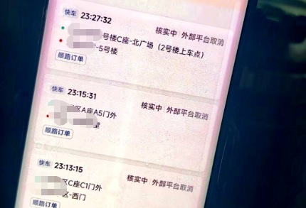 其实切单这个话题很大,想要一次性讲完没有几万字是讲不完的,不过近期,有司机师傅分享的一个具体案例还挺有代表性的:他在12月22号凌晨接连被派3个顺路单,但是都被取消了,理由是“外部平台取消”。