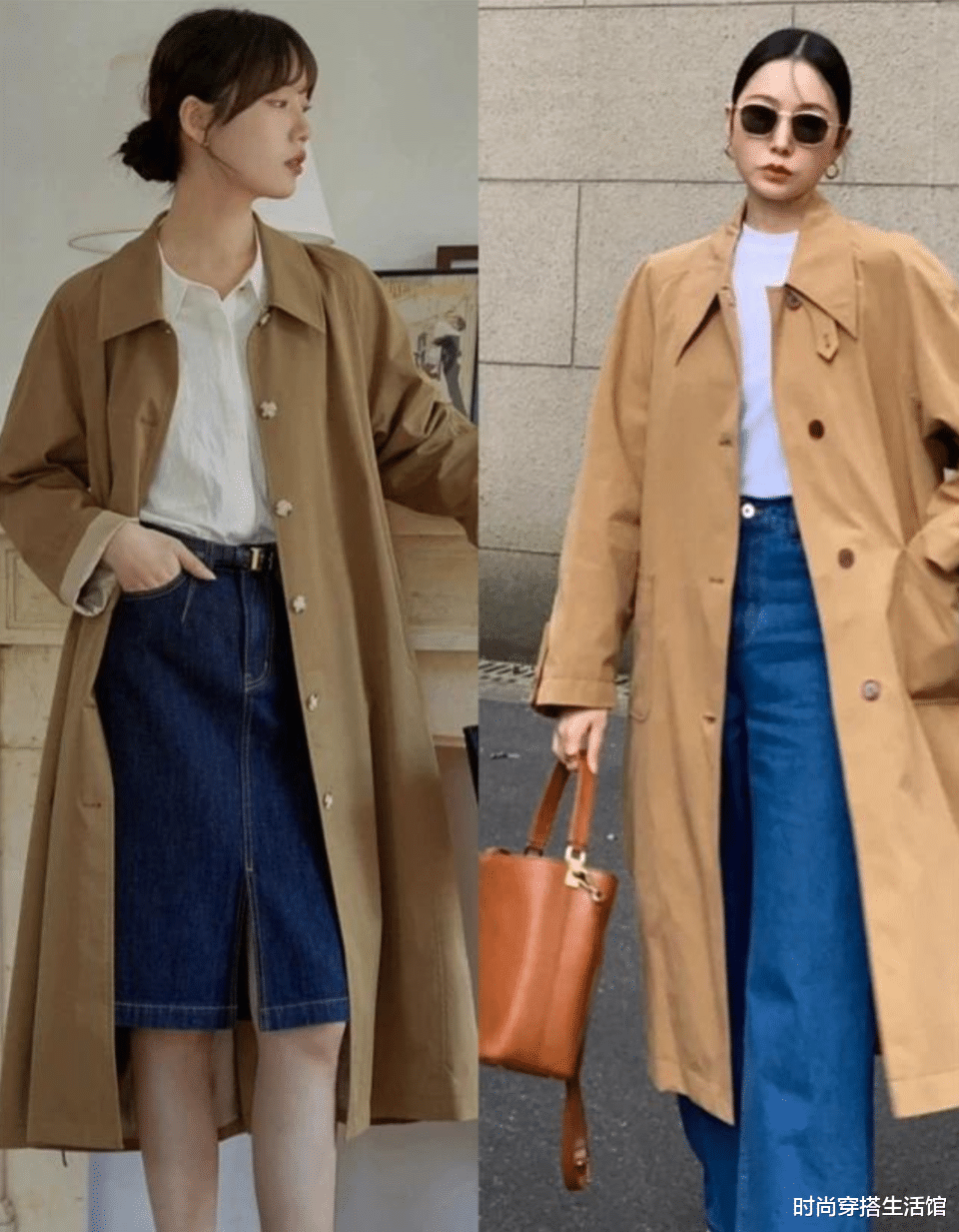 “奶奶风衣”的版型大部分都属于宽松款,但是从肩部开始就向外扩张和从腰部才开始外扩的设计是大有不同的。 请你规避从肩部开始就外扩的廓形风衣,直接横向拉宽了腰身,显得比例五五开,最好选择从腰部最低处外扩的A字版型风衣,腰围不会被拉宽,衣摆的廓形设计又可以遮肉显瘦,拉伸我们的比例。