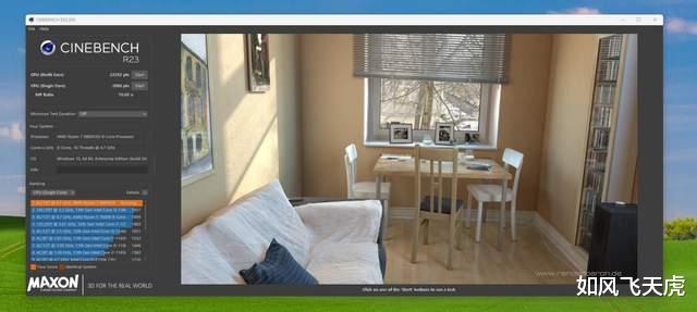 运行CINBENCH R23,多核22292,单核2086。软件采用Cinema 4D电影级渲染引擎构建测试场景,并加强着色器、抗锯齿、阴影、灯光及反射模糊等测试项目。