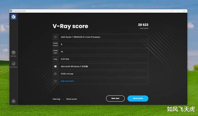 V-Ray 测试跑分,28623,同样是比超频前的数值提升不少。