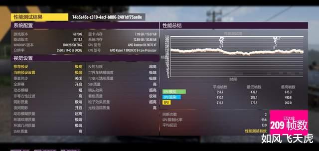 地平线5游戏,2K分辨率极端画质方案下,,CPU模拟平均543.7帧,CPU渲染平均403.1帧,GPU平均216.6帧。