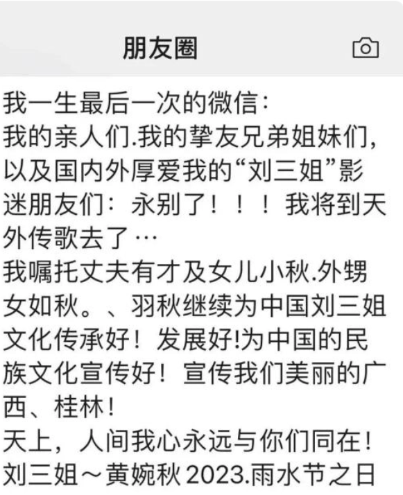 2023年,临终之际的黄婉秋强撑着一口气,留下了最后的遗言。