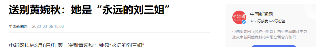参考信源:中国新闻网:送别黄婉秋:她是“永远的刘三姐”