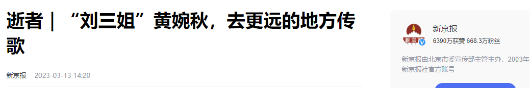 新京报:逝者|“刘三姐”黄婉秋,去更远的地方传歌