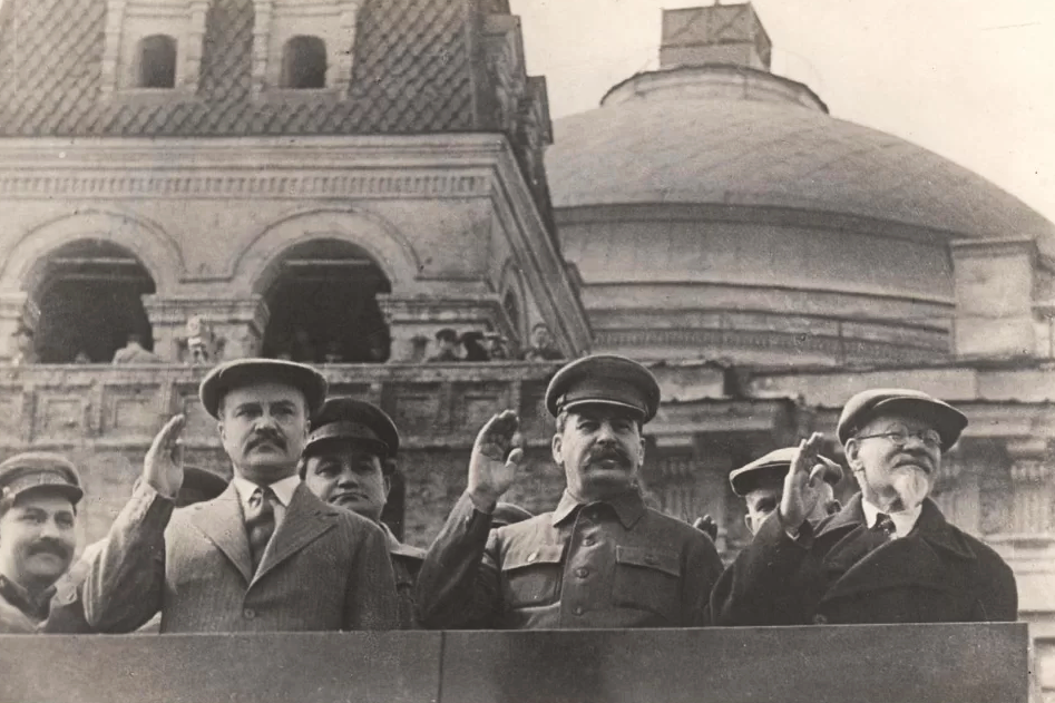 照片. 红场五一劳动节游行期间,党和国家领导人在列宁墓观礼台.1937年5月1日