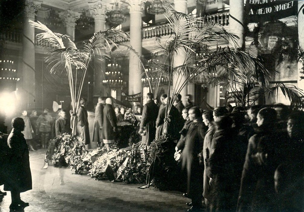 照片. 工会大厦圆柱大厅内的列宁吊唁仪式. 1924年1月23日-27日