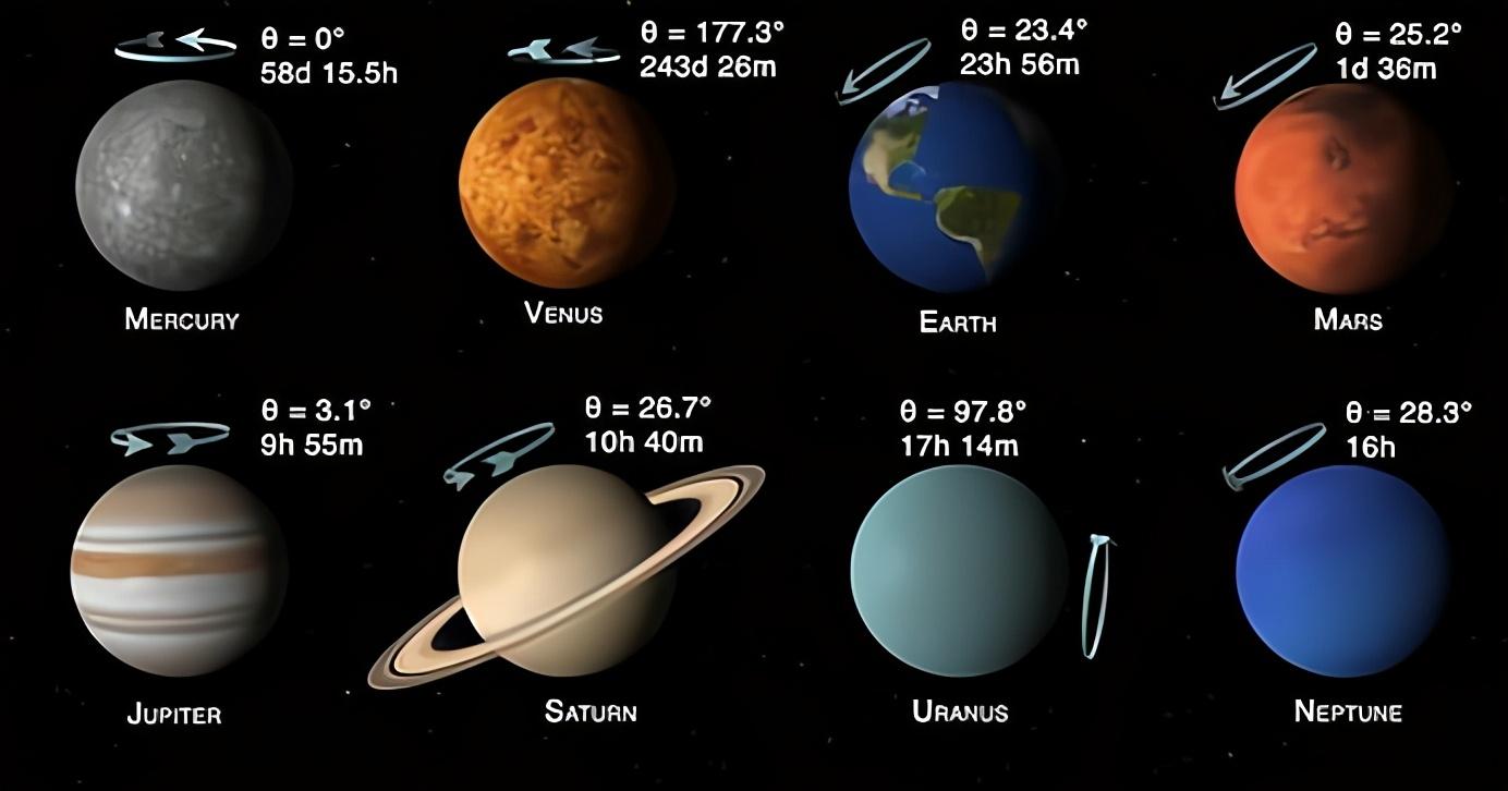 然而现在的八大行星,其自转状态存在着一定的差异,这是什么原因呢?科学家推测,这应该是天体碰撞所造成的。从上图我们可以看到,金星和天王星被撞得最惨,其中金星被撞得自转方向完全反了,而天王星则是直接被撞“躺下”。