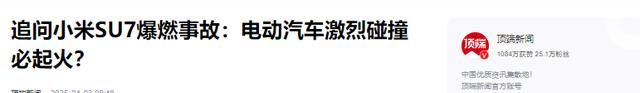 原文登载于顶端新闻2025年04月03日关于追问小米SU7爆燃事故:电动汽车激烈碰撞必起火?的报道