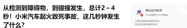 原文登载于每日经济新闻2025年04月01日关于从检测到障碍物,到碰撞发生,总计2~4秒!小米汽车起火致死事故,这几秒钟发生了什么?的报道