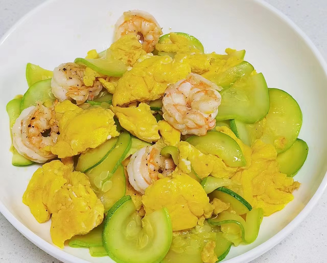 食材:西葫芦、蒜、鸡蛋、虾仁