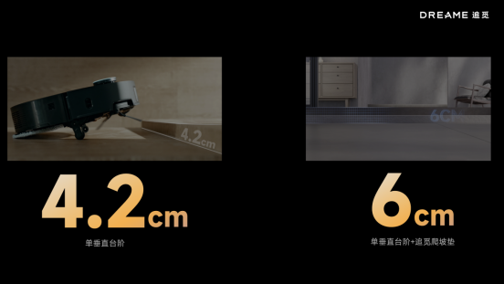 此次发布的追觅X50系列扫地机器人,搭载追觅全球首创“仿生机械足越障技术”,灵感源自轮足机器人,实现了单层垂直台阶最高越障4.2cm、增加追觅爬坡垫后越障6cm的惊人越障能力。在轮毂电机驱动与双节摆臂系统支撑的双重组合下,机器人的“腿”可伸长一倍,当遇到障碍物时,小轮会先将机器撑起,随后驱动机器向前滑动,实现了从“爬行”到“行走”的飞跃。