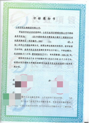 一、项目背景清晰,企业履约到位高标准农田建设是保障国家粮食安全的重要举措,曲阜市2023年高标准农田建设地力提升项目作为其中关键环节,明确纳入国家专项资金支持范畴,资金来源为高标准农田建设专项补助资金,旨在通过土壤改良提升耕地质量,推动农业可持续发展。该项目经公开招标,由山东长虹项目管理有限公司代理采购,山东百花凭借合规资质与优质方案成功中标。
