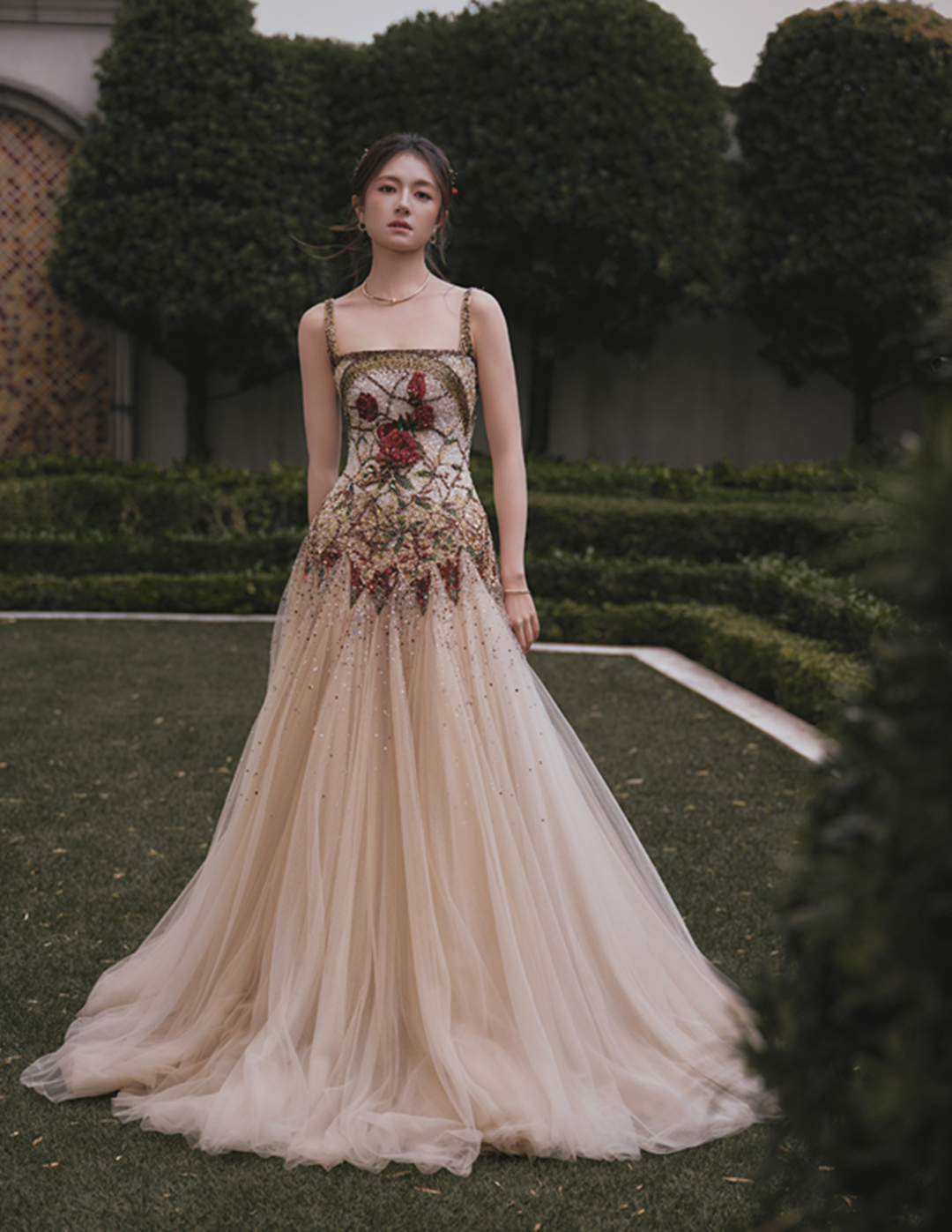 据现场工作人员透露,这款礼裙的筹备耗时近一个月,从设计定稿到手工制作全程由专业团队把控,光是裙身的鲜花装饰就采用了3D打印环保材质,既还原了真实花卉的灵动质感,又契合了当下娱乐圈推崇的可持续时尚趋势。