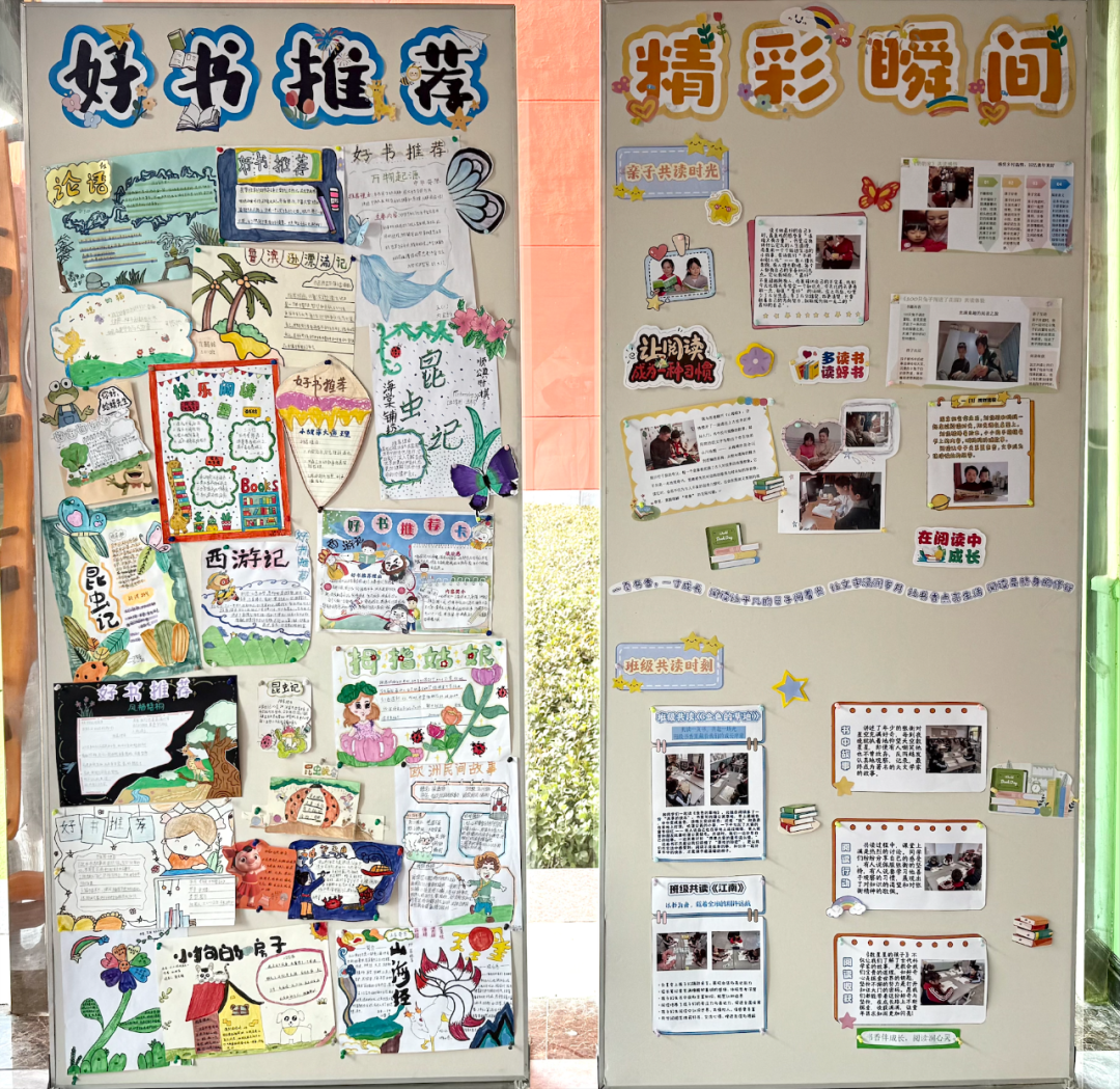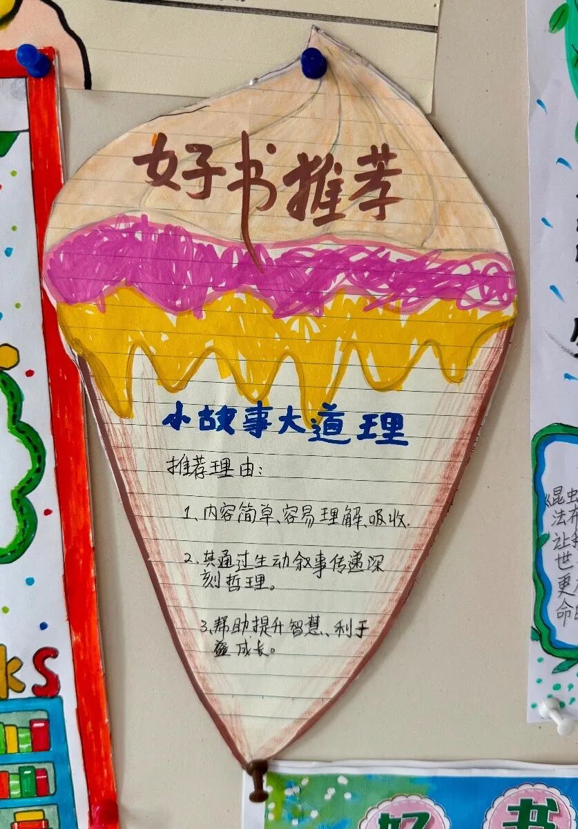我们已将这些珍贵的成果精心布置在一楼大厅展示区,路过的同学都会停下脚步,在展示区前驻足欣赏,互相分享自己发现的“宝藏书籍”,交流阅读心得。
