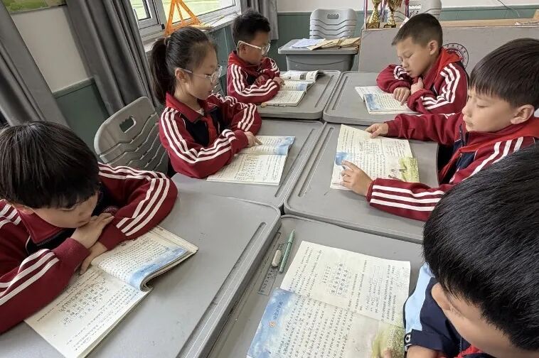 三尺讲台旁、教室角落处,老师与学生一起,指尖划过书页,轻声朗读经典片段,偶尔停下交流感悟,眼神中满是专注与默契。