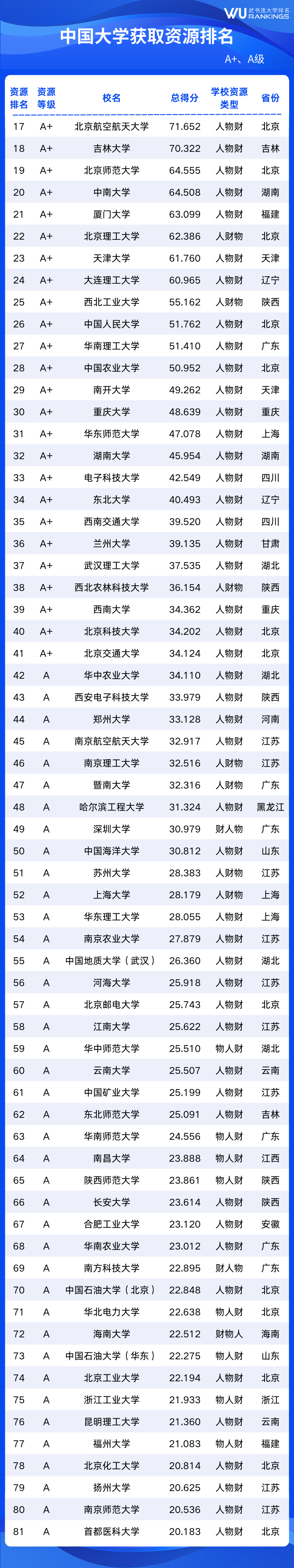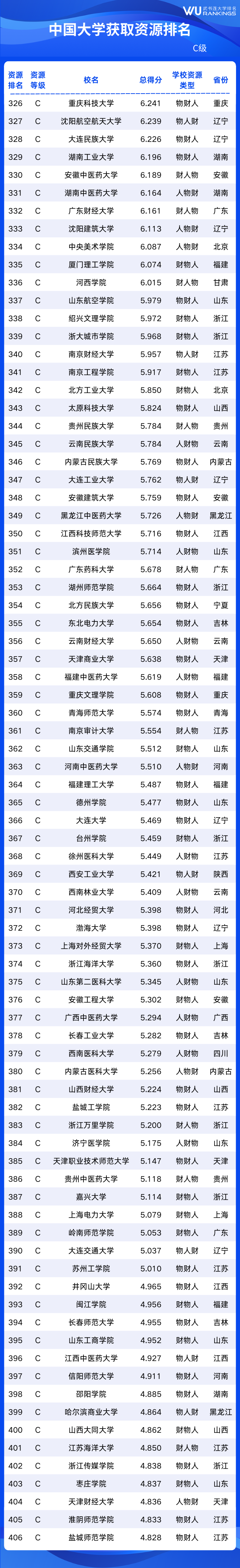 全国大学资源排名