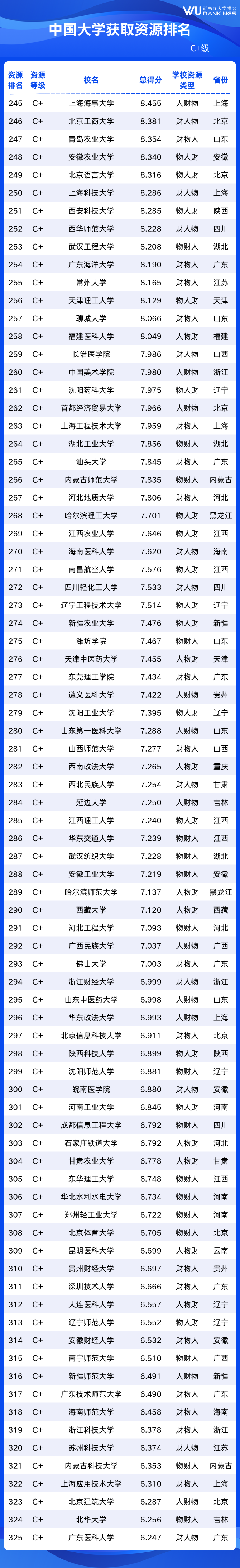 因篇幅有限,仅展示C等及以上大学排名,2025中国大学资源排名完整榜单可访问武书连大学排名官网查看。