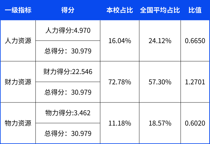 财力资源:权重0.5000。学校一般公共预算等各项公开收入。