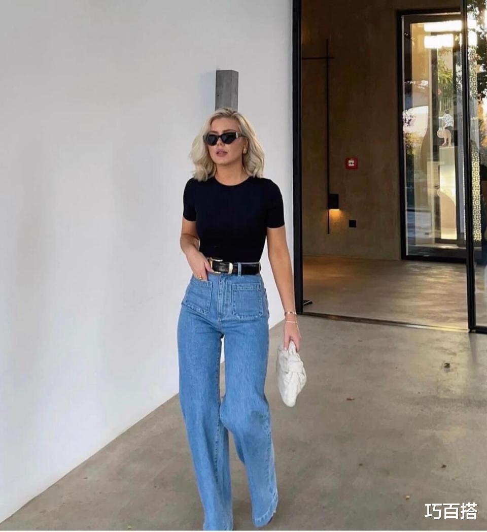 一款基础T恤既能和加肥加长的拖地阔腿牛仔裤搭配,又能和上紧下松喇叭裤搭配,可以和修身九分牛仔裤搭配,也可以和九分阔腿牛仔裤搭配,在版型设计上,它也丰富多元,大家也可以根据自己的身材比例和腿型自行挑选!
