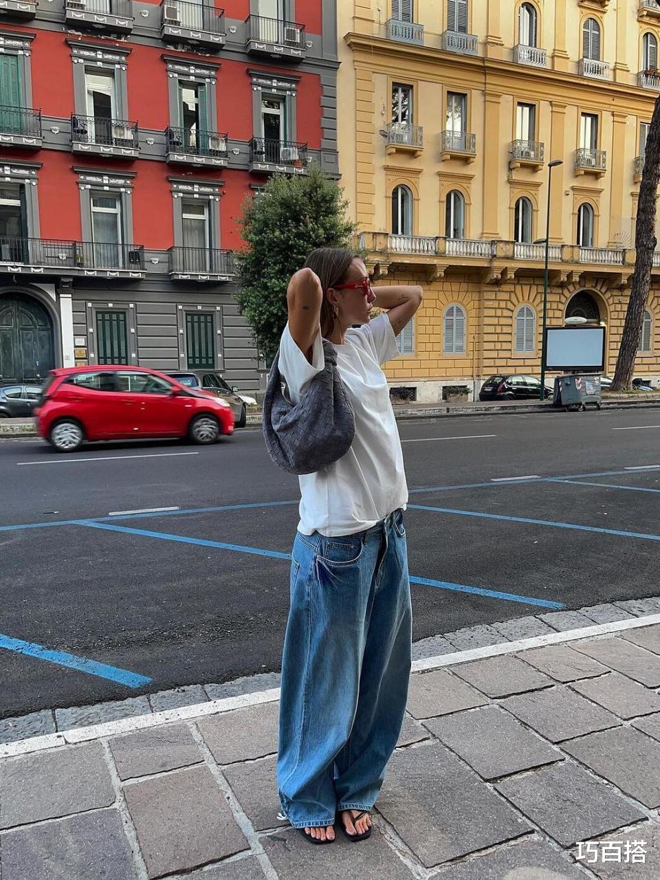 或许从博主的上身效果来看,大家会觉得T恤+牛仔裤的组合,只能是经典不过时的基础款式和基础配色。
