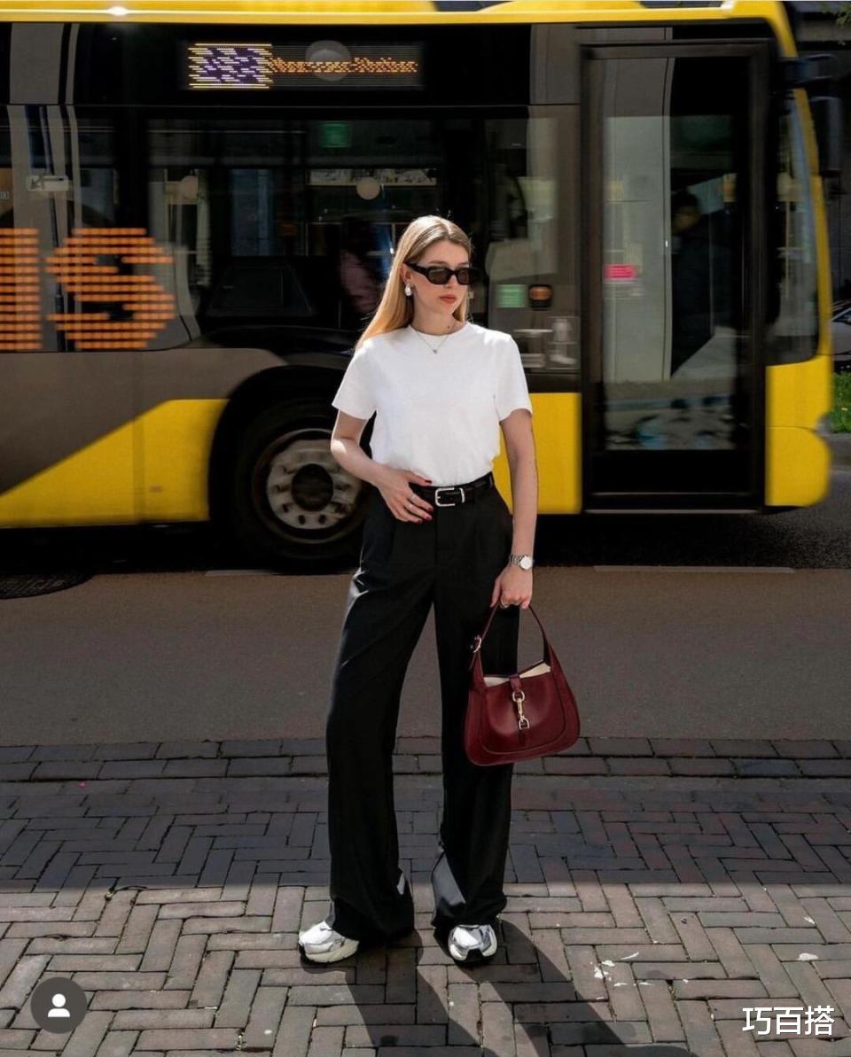 当然了,如果你衣橱里只有一件T恤,但有多条牛仔裤,也不用担心,T恤的百搭性完全不输牛仔裤。