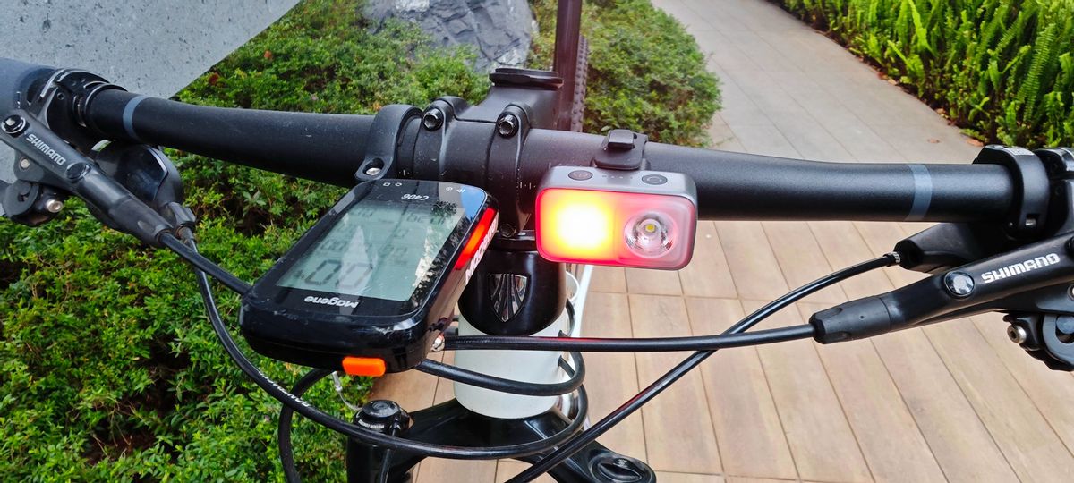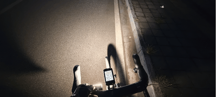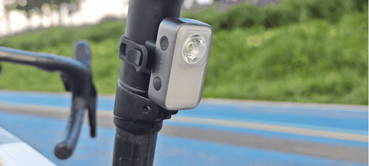 下面是我的实用场景:骑行与夜跑的双重“光之伴侣”。作为公路车前灯使用,由于绑带形状的原因和我的破风车把不太匹配但安装也非常牢固,如果是圆形车把就匹配了。