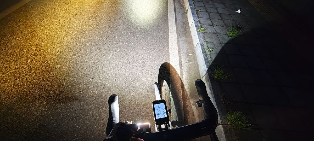 下面进行路测, 下图是夜骑,有路灯的环境,6000K色温光线响应速度极快,高速骑行也能清楚照亮路面 。