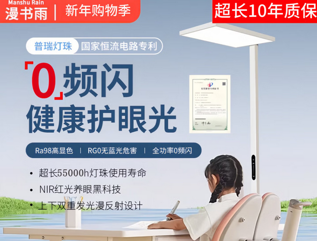 灯珠,漫书雨星光Pro用的是普瑞进口原厂灯珠搭配自然光全挂光谱技术。首先灯珠寿命长,突破55000小时,其次可见光齐全,有害蓝光含量不足RG0限值的5%,同时增加益眼红光和天青光含量,达到促 进睫状肌放松,增强眼底细胞活 性,保护视力的功效。