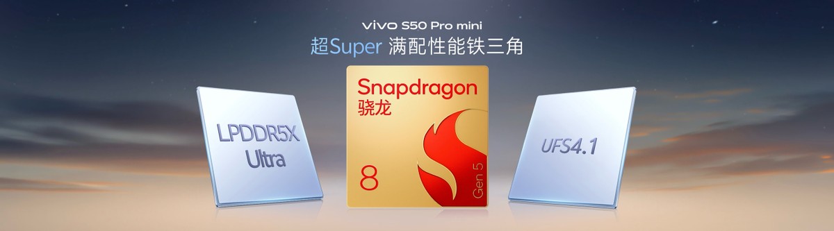 性能方面,vivo S50系列延续 S 系列“不做妥协”的思路,将旗舰级配置带给更多用户。vivo S50系列全新搭载高通骁龙8系旗舰芯片,vivo S50 Pro mini 更是首批搭载第五代骁龙 8 旗舰芯片,配合至 LPDDR5X Ultra + UFS 4.1的满配性能铁三角组合,实现了安兔兔跑分超 330 万,为重度手游用户和多任务用户提供更持久、更稳定的旗舰性能体验。