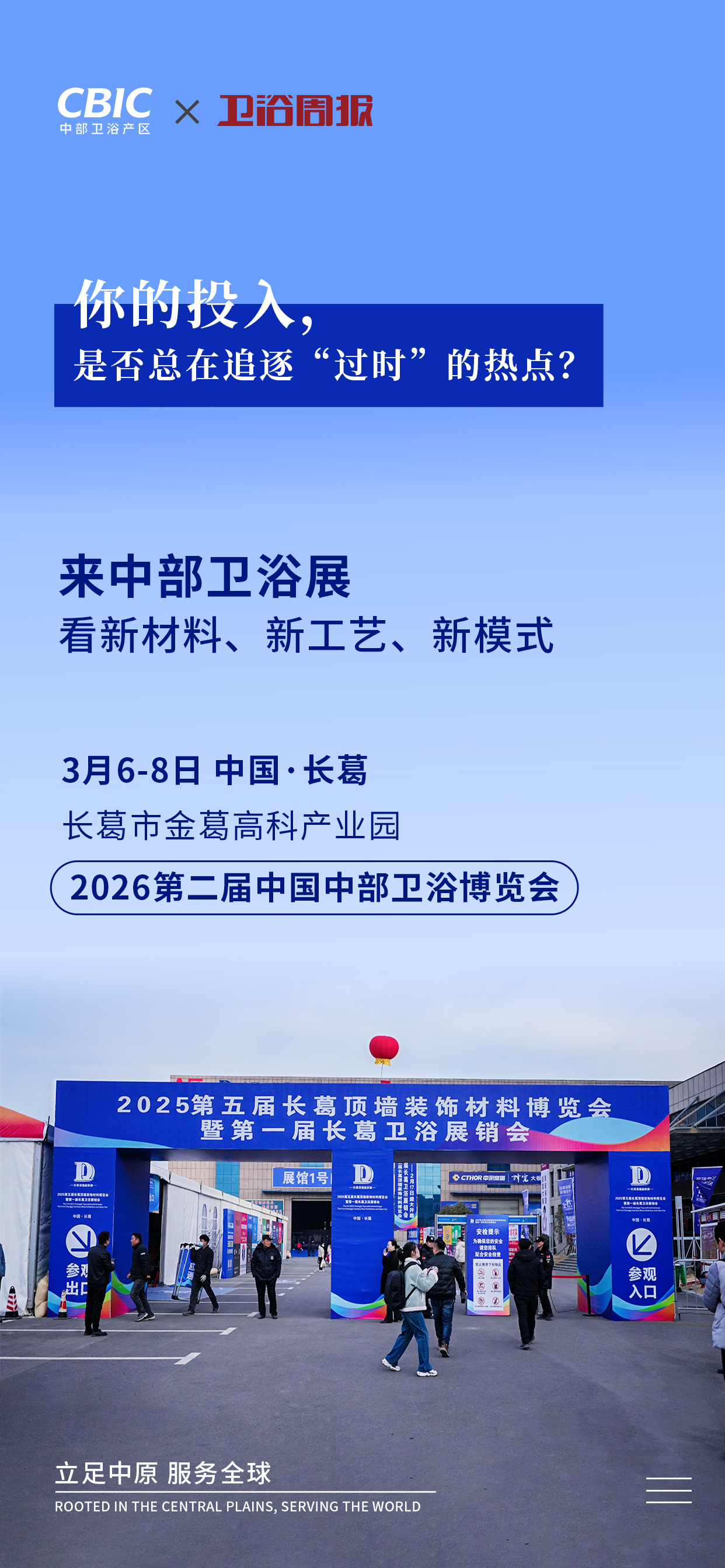 2026第二届中国中部卫浴博览会,不仅是中部卫浴产业实力的集中检阅,更是卫浴企业穿越周期、寻找新动能的思想场与资源池。在这里,您将亲历产业集中化下的生存智慧,触摸高值化赛道的创新脉搏,链接服务化转型的关键伙伴。