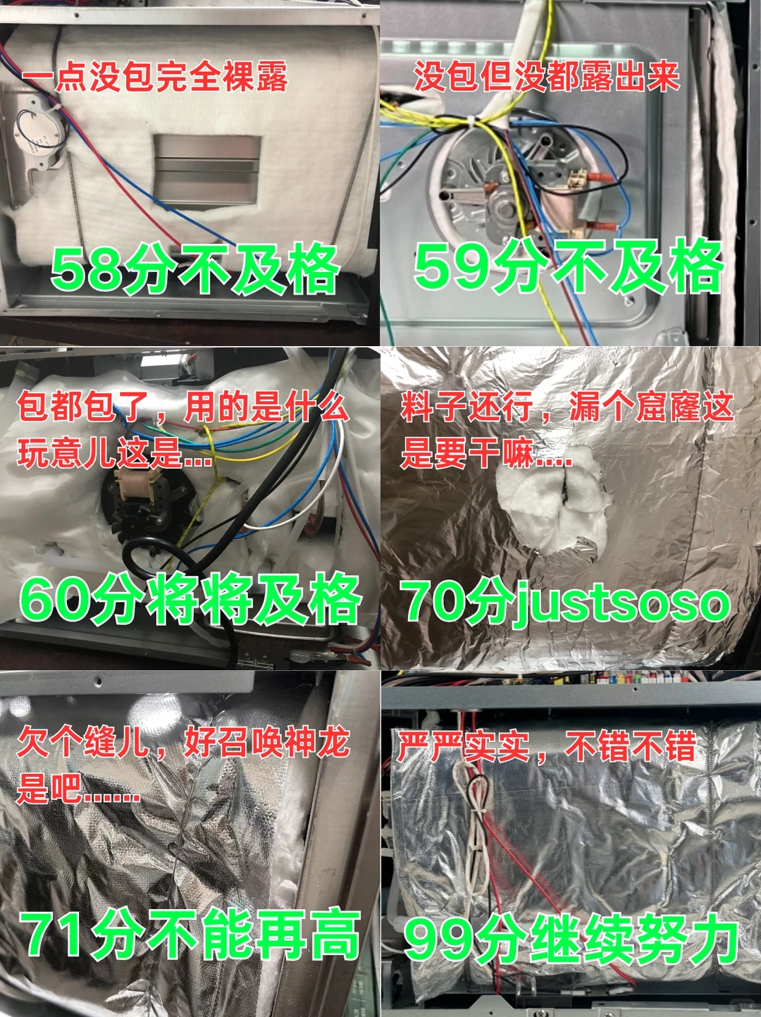一定要提前和商家确认是否使用玻璃纤维隔热层。因为开风炉烤箱功能的时候,玻璃纤维暴露的风险也会更大。