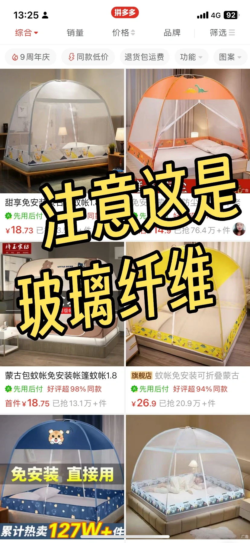 可我们很多人都不知道,其实蚊帐的支架也是可能是玻璃纤维材质的。玻璃纤维支架的价格要比不锈钢支架便宜很多,因此也会有不少人踩坑。