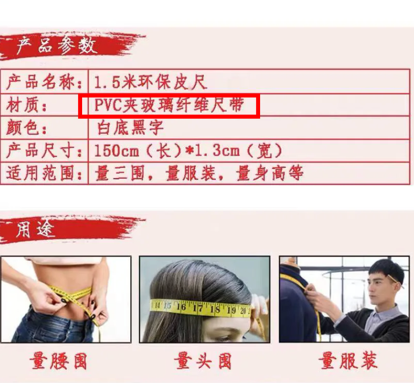 三围尺是家家必备的测量工具,在网上买衣服和裤子的时候有的售后会提前测量一下。三维尺的产品名称叫环保皮尺,可它的材料是pvc加玻璃纤维尺带。
