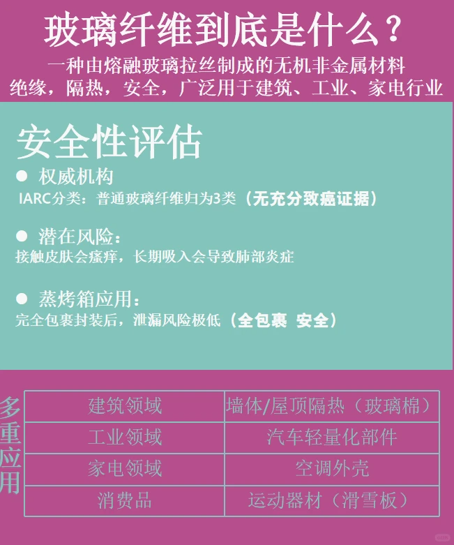 一般来说,如果是那种普通的老式烤箱,并不会直接使用裸露的玻璃纤维材料。