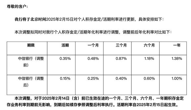 红星资本局注意到,中信银行(601998.HK;00998.HK)也于1月中旬宣布,从2月15日起下调个人积存金利率。