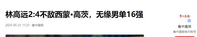 林高远2:4不敌西蒙·高茨,无缘男单16强 2025-05-21 11:21·鲁中晨报