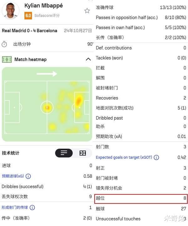 那场比赛,姆巴佩出现了惊人的8次越位。当他一次又一次陷入到弗里克的防守陷阱,也成为了当时皇马最大的难题。