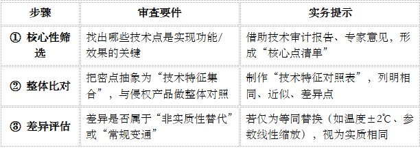 例如,剩余相同部分对性能/成本贡献 ≥70%,即可主张实质相同。