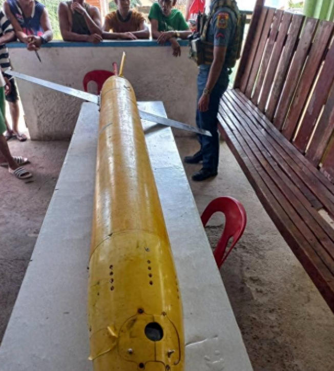 据菲律宾GNA电视台11月2日报道,当地时间12月30日早上大约6点左右,来自菲律宾中部八打雁以东的三位当地渔民在海上作业期间,在玛斯巴特省的圣帕司瓜尔镇水域附近捕捞了一枚橘黄色涂装的水下作业“无人潜水艇”。