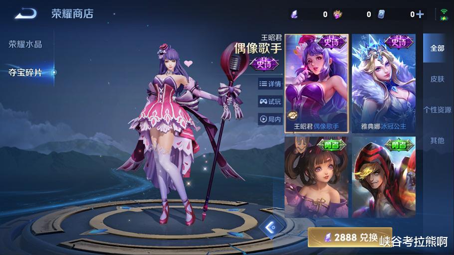 S42赛季夺宝抽奖迎来改版,以后夺宝抽到荣耀水晶之前的道具(英雄、皮肤除外)均会预存到【夺宝盒】中,既可以选择领取,也可以分解成夺宝碎片,进行典藏皮肤主题的回城、拖尾、击败奖励的兑换,甚至可以通过2888个夺宝碎片直接兑换到奖池里的偶像歌手史诗皮肤。