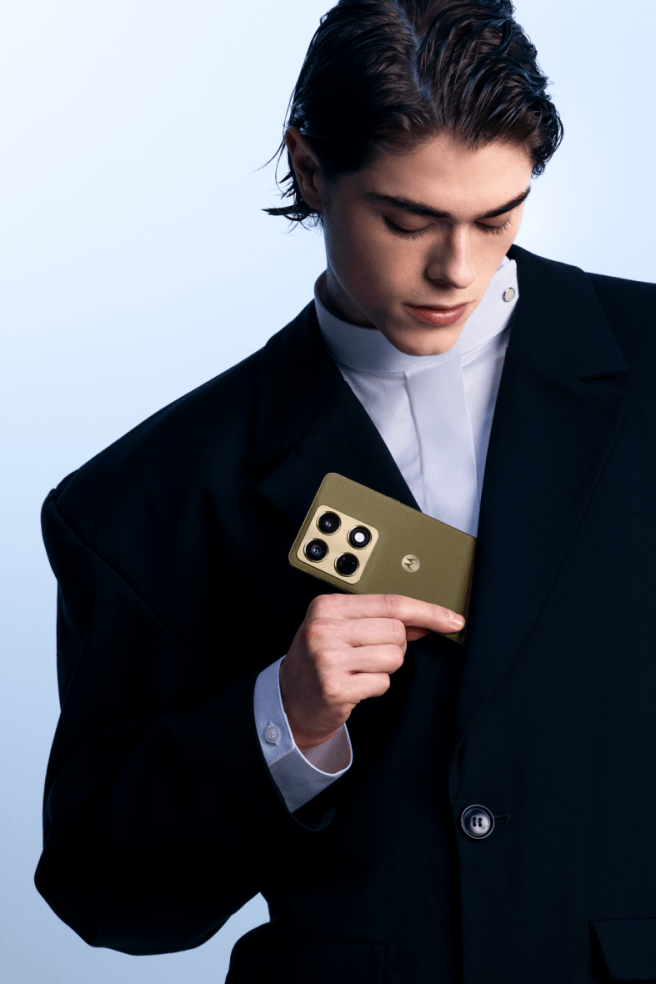 色彩方面,联想moto与潘通联合调打造“墨岚黑”与“梧桐金”两款高定配色,使科技产品亦能成为诠释个人品位的精致配饰。