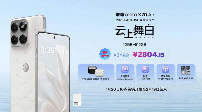 云舞留白,轻盈有度:联想moto X70 Air云上舞白冰钻限定版