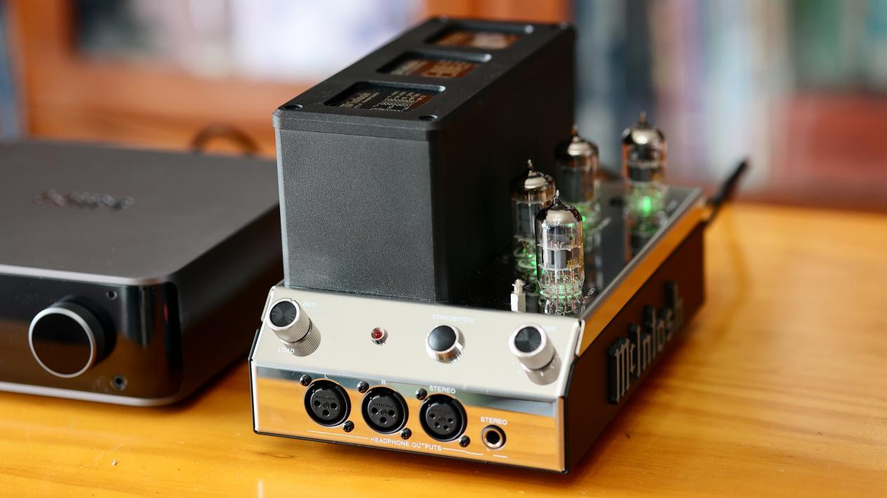 外观方面,MHA200完全继承了麦景图经典型号MC275的设计语言,同样采用竖向布局、外置独立变压器、倾斜前面板以及带有荧绿色灯光的真空管。只不过它的体积小巧很多,大约只有一张A4纸的大小,可以看作是MC275的等比例缩小版。前面板两侧分别是阻抗匹配旋钮和音量旋钮,中间则是待机指示灯和电源键,下方则配备6.35mm单端、XLR平衡以及双三芯XLR耳机接口。需要注意的是,麦景图的热机逻辑比较特别:接上电源后,不用开机,待机灯亮起即开始预热真空管。因此长时间不使用时,建议拔掉电源线,以免影响真空管寿命。