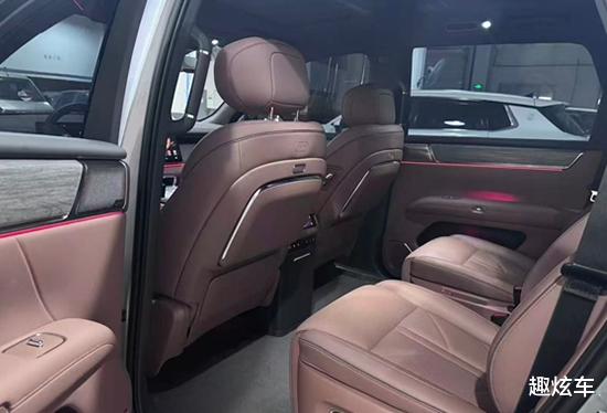前排座椅宽大厚实,头枕尺寸适中。新车采用2+2+2的6座布局,第二排配备独立座椅并提供电动腿托,乘坐空间以及舒适性均有所保证。