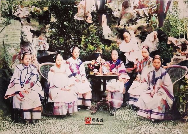 六位女士穿着打扮十分漂亮,有几个看起来文雅大方,家里背景也挺好,完全就是大户人家小姐的气质。那时候,娶老婆纳小妾的风气很盛,“那些小妾们也都伺候得非常周到,一点都不敢马虎”。