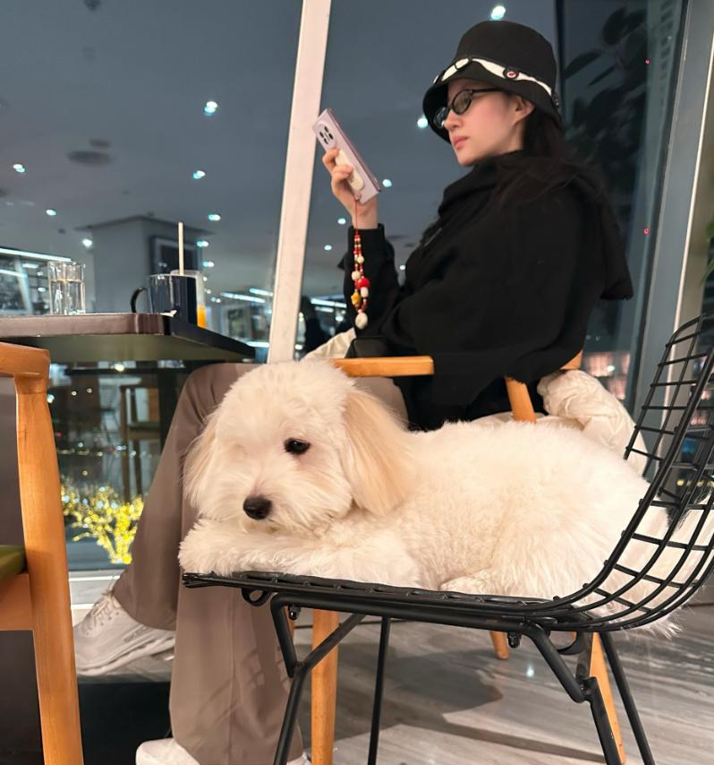 刘亦菲还晒出了她和狗狗“哈哈”的室内合照。照片中的刘亦菲坐在桌前,她单手拿着手机,像是在看什么信息。狗狗“哈哈”则是趴在她身边的椅子上,看起来十分乖巧。有细心的网友注意到刘亦菲这一次的晒照是素颜出镜,红润的气色和紧致的下颚线也着实让不少人感到艳羡不已。