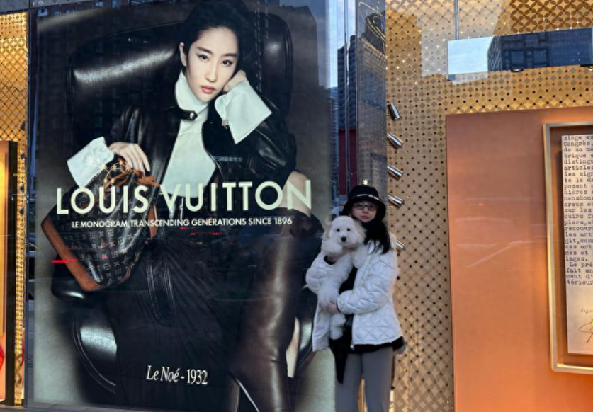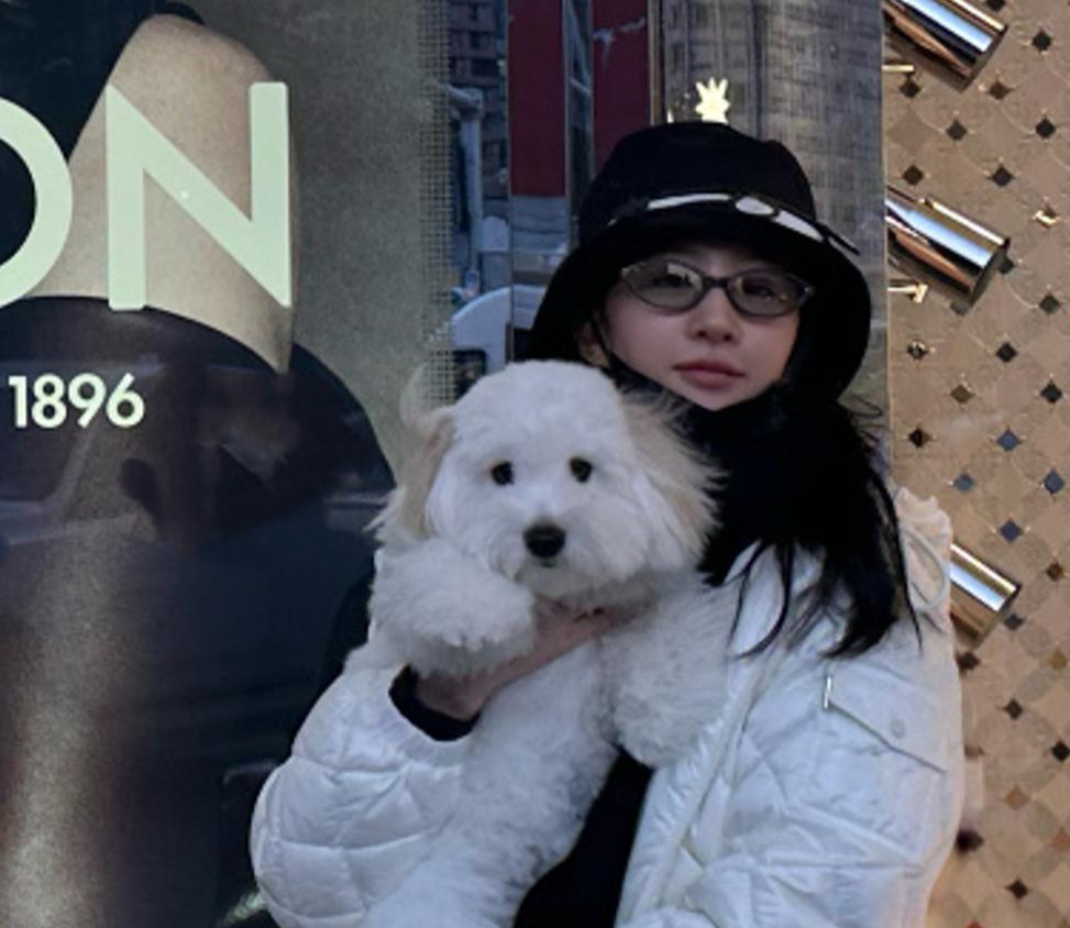 刘亦菲在自己的INS账号上更新了动态,晒出了她与狗狗“哈哈”一起外出散步时的合照。照片中的刘亦菲穿着黑色的上衣,外搭白色的羽绒服外套,搭配灰色的长裤与白色运动鞋,看起来十分舒适保暖。刘亦菲披散着长发,戴着黑色的渔夫帽和黑色的口罩,搭配太阳眼镜,看起来十分休闲低调。她抱着狗狗“哈哈”,站在她的巨型广告牌下合影。