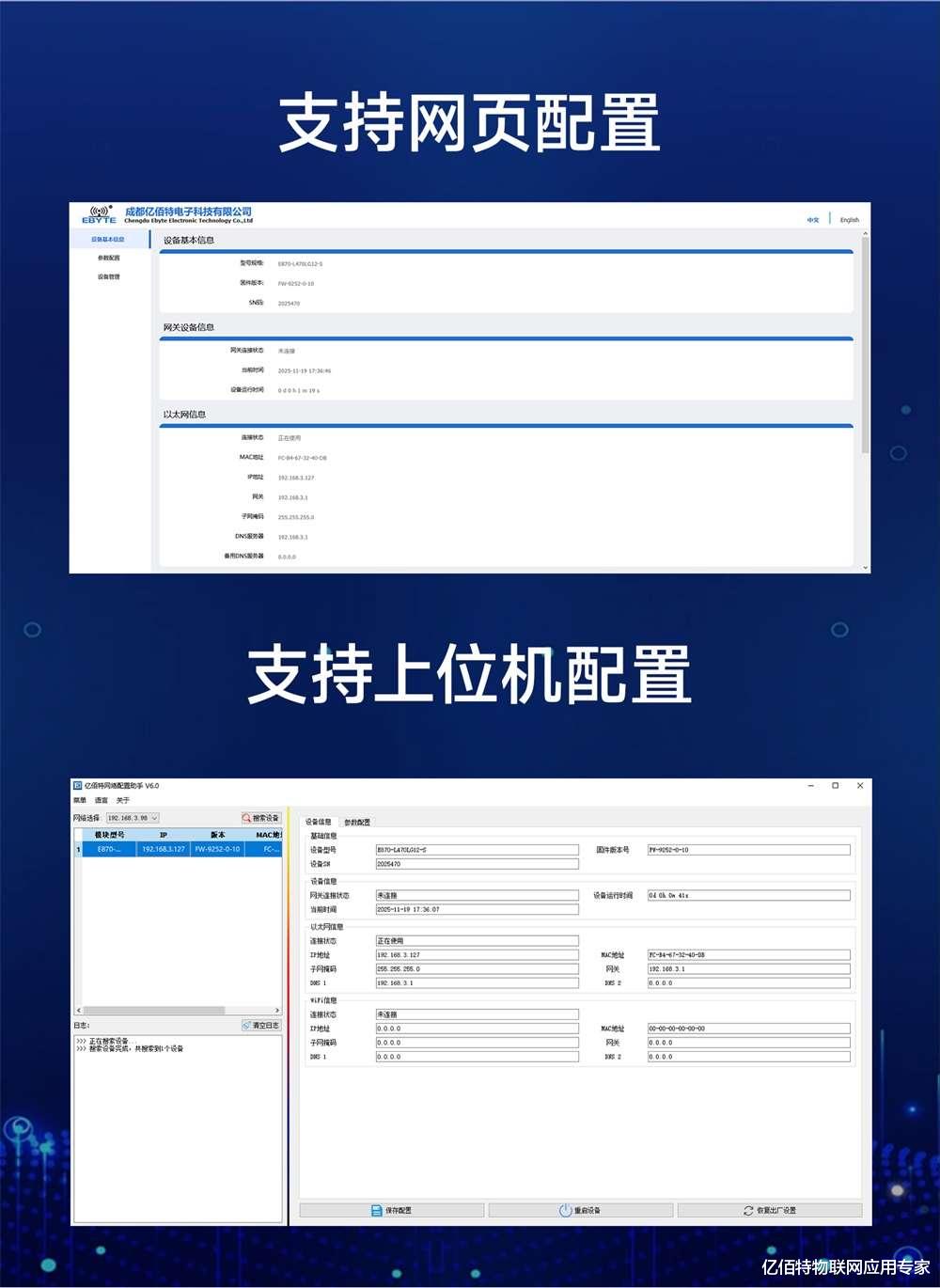 双配置方式,灵活管理支持网页配置与上位机配置工具,满足不同用户习惯