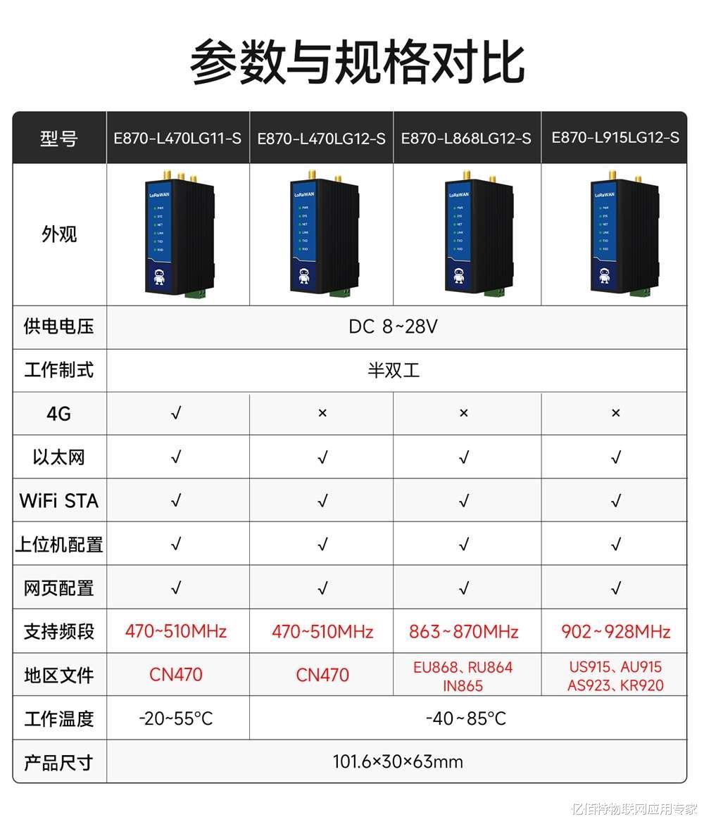 E870-LxxxLG1x-S系列LoRaWAN网关,以多网融合、标准协议、工业可靠为核心优势,为智能制造、智慧城市、农业物联网等场景提供灵活、稳定的网络接入方案。无论是新建项目还是旧网改造,它都能助您快速搭建覆盖广泛的低功耗物联网。