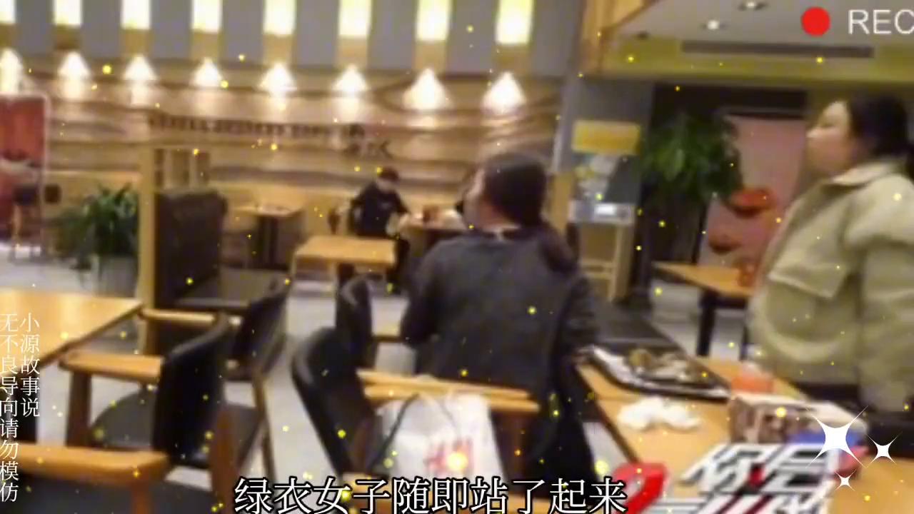 恰好女子这时也已经返回到座位上,男子一直热情地劝说女子喝水。毫不知情的女子一端起了动过手脚的水杯,准备喝水。那么绿衣女子会阻止吗?这边绿衣女子好像在思考着什么,一直在抖动着双脚,他也不确定杯子里到底加了什么。而且此时餐厅里并没有男性在场,可能心里稍微有点胆怯,所以并没有轻举妄动。